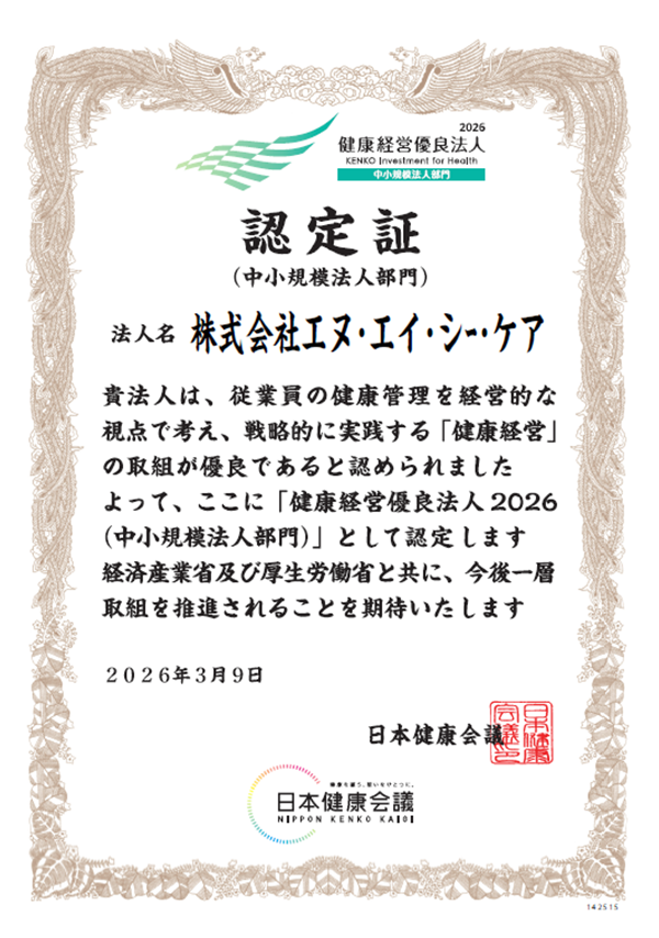 この度、2026年3月9日に「健康経営優良法人2026(中小規模法人部門)」として認定されました。