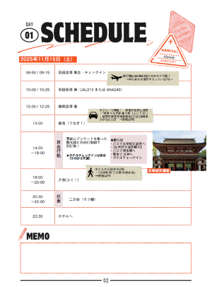 当日のスケジュールや、観光地の情報、持ち物リストなどが掲載されており、参加者も安心して旅行を楽しむことができました。