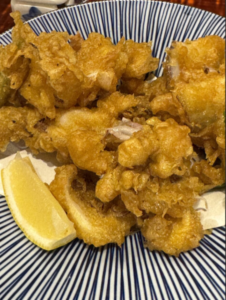 福岡は玄界灘のふぐが有名で、てっさ(刺身)・から揚げ・しゅうまい・てっちり(鍋)など、ふぐ尽くしの料理を楽しみました。