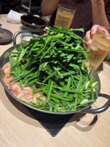 一次会でお腹がいっぱいにもかかわらず、名物のもつ鍋を堪能し、締めの雑炊やちゃんぽん麺までしっかり楽しみました。