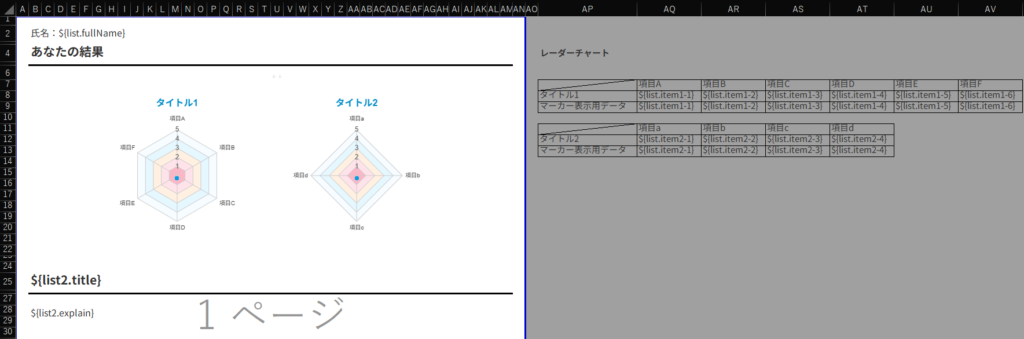具体的には、複数件のデータをそれぞれExcelテンプレートに反映し、画面レイアウトを崩すことなく、グラフを含む複数ページの帳票を1つのPDFファイルにまとめて出力する必要がありました。