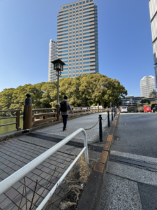 ④地上へ出たら左に曲がり、弁慶橋を渡ります