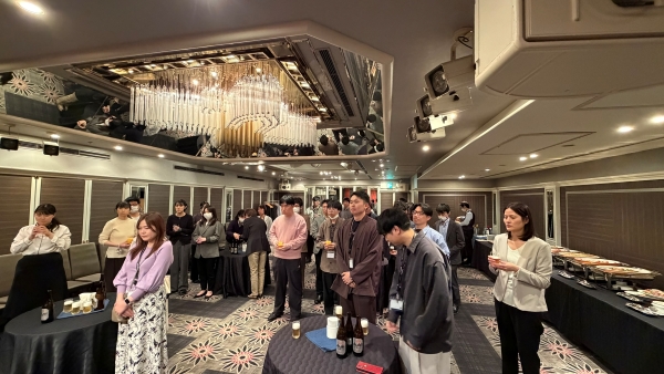 立食形式のパーティーにて、料理を楽しみながら部署を越えて社員同士が交流し、和やかで楽しいひとときとなりました。